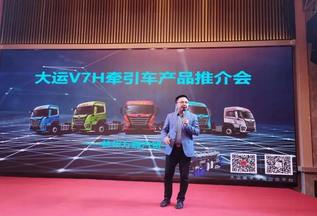 随后,林州万顺汽车销售有限公司总经理李鑫上台,对大运厂家领导及潍柴动力领导的到来与支持表示感谢,对到场的各位卡友表示欢迎。李总表示,目前大运搭配潍柴系列燃气产品已经覆盖各个马力段,并且已达到了一定的销量,获得了一致好评。林州万顺会联合大运公司给大家提供最优惠的订车政策和最贴心的服务,让各位卡友在购车和用车的环节无后顾之忧。
