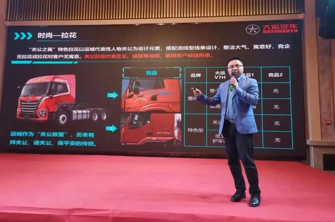 在产品介绍环节,河南大区经理倪世界对大运V7H燃气产品进行了生动和详细的讲解,倪经理从“时尚、超轻、经济、舒适、安全、可靠”六大特点解析,通过详细的数据分析及收益计算,使大家对V7H产品多拉多挣、稳定可靠的特点印象深刻。讲解过程中穿插了互动和客户有奖问答环节,卡友踊跃参加,现场气氛高涨。