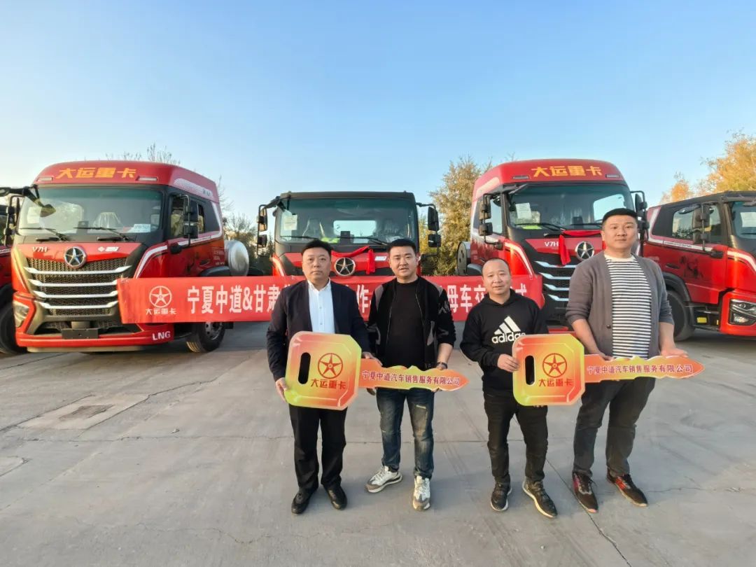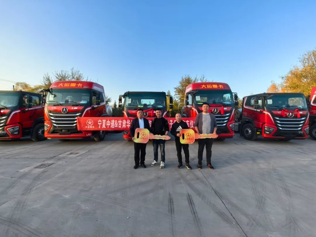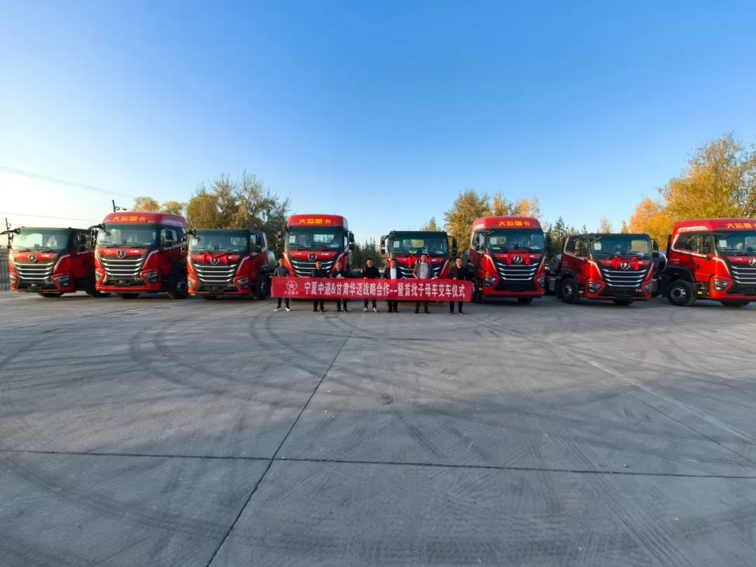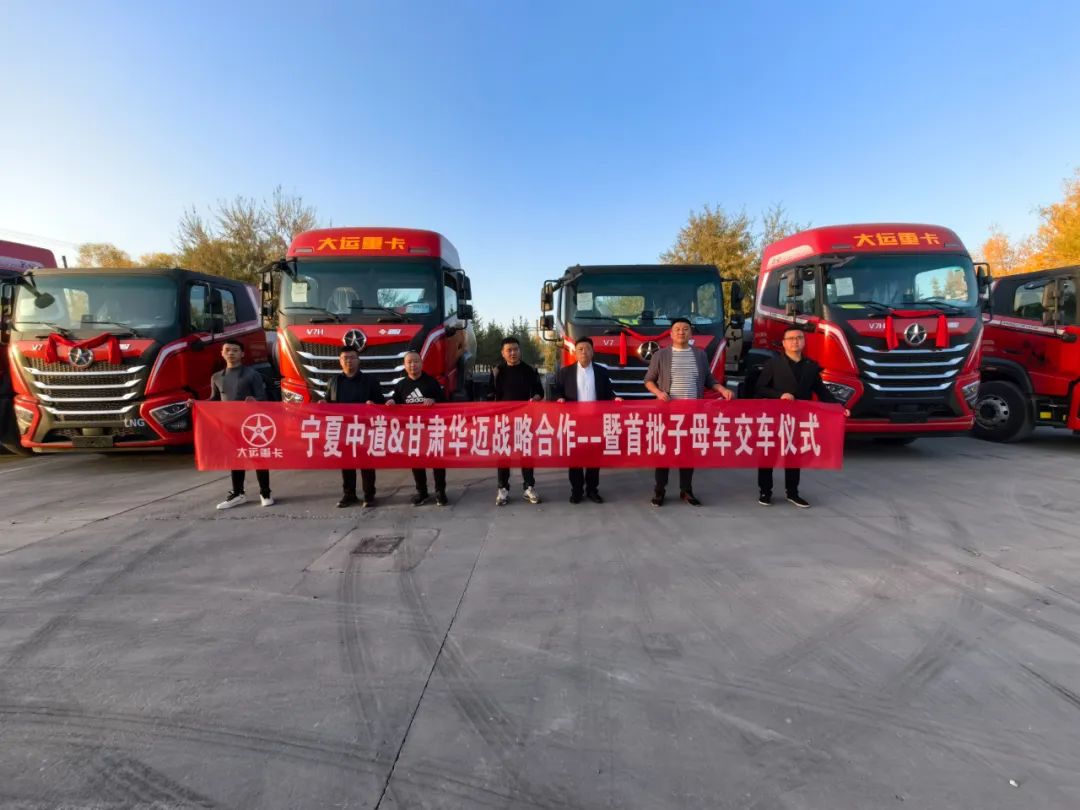 10月23日,大运重卡在甘肃酒泉这个常年无业务的区域取得了巨大的突破,宁夏中道汽车销售有限公司与甘肃华迈供应链有限公司达成战略合作关系,并首批交付8台大运V7H燃气子母车!大运重卡在这个新兴市场上崭露头角,为当地经济发展注入了一股强大的动能。