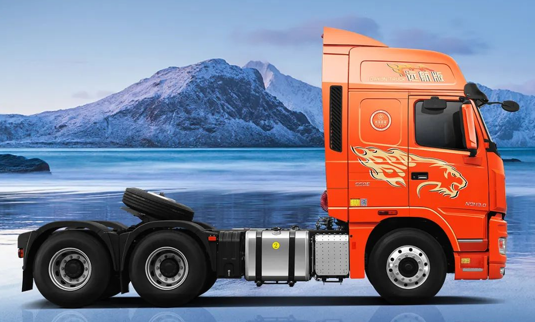 大运N9H 3.0版6*4 牵引车应用前2后3板簧,轻量化推力杆+平衡轴,轻量化轮辋,整车降重;储气筒、油箱、变速箱等零部件铝合金材质应用,全新科技降重,自重更低;轻点才好多拉货,多拉货物才能多赚钱,多装才能多赚。