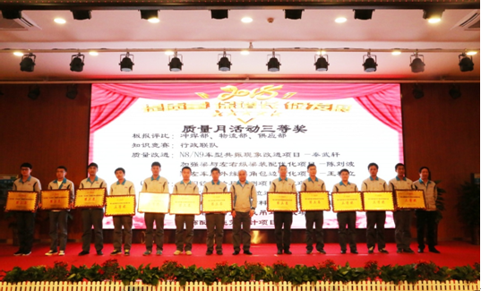 4月14日14:30,大运汽车运城事业部2018年度第九届“质量月”活动表彰大会在办公楼十二楼多功能厅隆重召开,会议紧紧围绕“提质量、保增长、促发展”的活动主题,旨在总结经验、鼓励先进;找出不足、持续改进。“质量月”活动领导小组成员及各部门负责人、员工代表参加了表彰活动,活动由品质管理部经理助理李树宾主持。