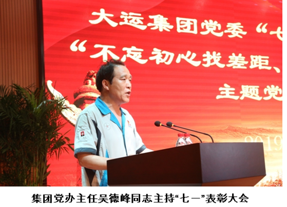 为庆祝中国共产党成立98周年,表彰过去一年在集团党建工作中涌现出来的先进集体和个人,6月28日下午,大运集团党委在办公楼12楼多功能厅隆重召开了2019年度“七一”表彰大会暨“不忘初心找差距、牢记使命抓落实”主题党日活动。大运集团党委副书记、集团审计部常务副总经理刘向阳同志,大运集团党委委员、工会主席、大运汽车运城事业部副总经理孙兆明同志出席本次会议,集团党委办公室主任吴德峰同志主持会议。