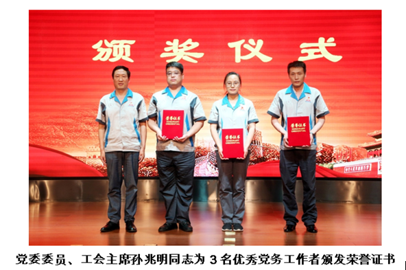 会议在庄严的国歌声中拉开帷幕。紧接着,全体党员面向党旗,重温了入党誓词,在斗志昂扬的宣誓之后,集团党委委员马雄英同志宣读了《关于表彰先进党支部、优秀党务工作者、优秀共产党员的决定》,公司领导为受表彰的优秀共产党员、优秀党务工作者、先进党支部代表分别颁发了荣誉证书和奖牌。