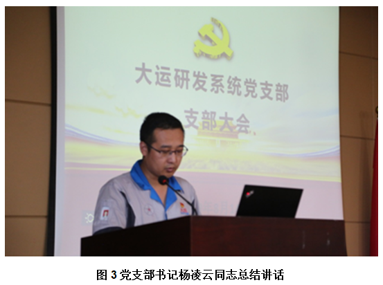 最后,研发系统党支部书记杨凌云同志进行总结讲话:此次大会非常成功,热烈祝贺赵鹏、申五七同志加入中国共产党,祝贺裴明飞、宋武林、闫雪鹏同志顺利转为正式党员。新的角色,新的使命,希望全体党员同志们要深刻认识共产党人的初心使命,积极发挥党员的模范带头作用,兢兢业业、恪尽职守、不忘初心、砥砺前行,争做合格的共产党员。