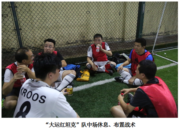中场休息期间,“大运红坦克”队因为上半场的领先,士气大振,税务局球队也因此调整了阵容。在简单的“排兵布阵”、调整战术后,双方球员胸有成竹地再次踏进赛场。