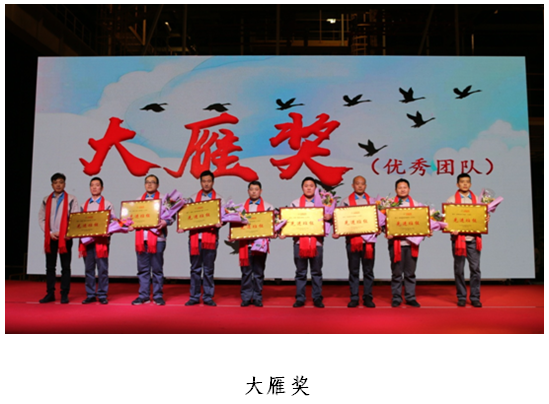 大雁奖:这个名字就让大家眼前一亮,大雁的迁徙更好诠释了团队协作的必要性和重要性,公司作为一个大团队,离不开每一个小团队的倾力合作,只有借力使力才能飞的更高,走的更远。