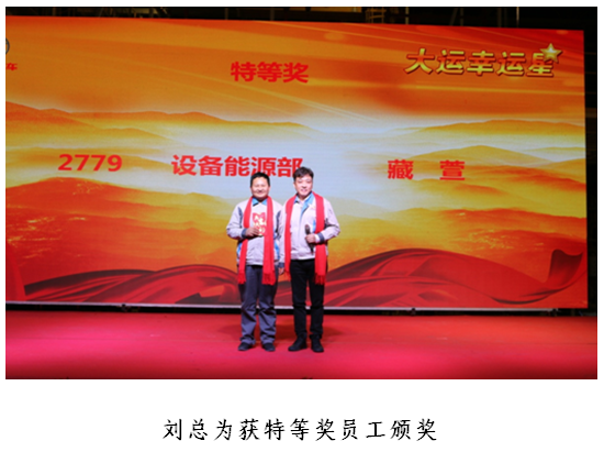 “大运幸运星”抽奖环节大家都很期待。本次抽奖人员由主持人现场指定,现场气氛异常活跃。抽奖环节奖品共分3个等级,每一类奖品都由系统领导选定。
